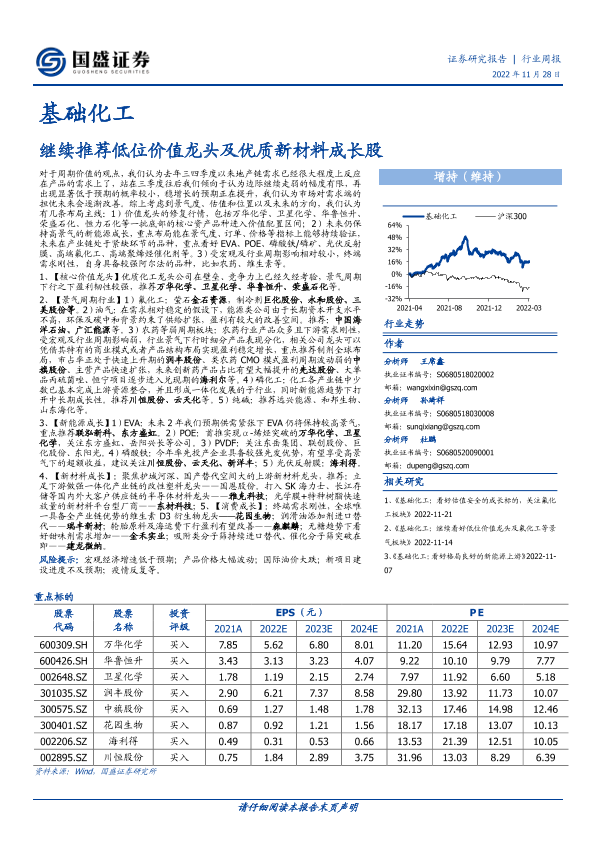 【国盛证券】【20221128】基础化工行业周报:继续推荐低位价值龙头及优质新材料成长股-10页