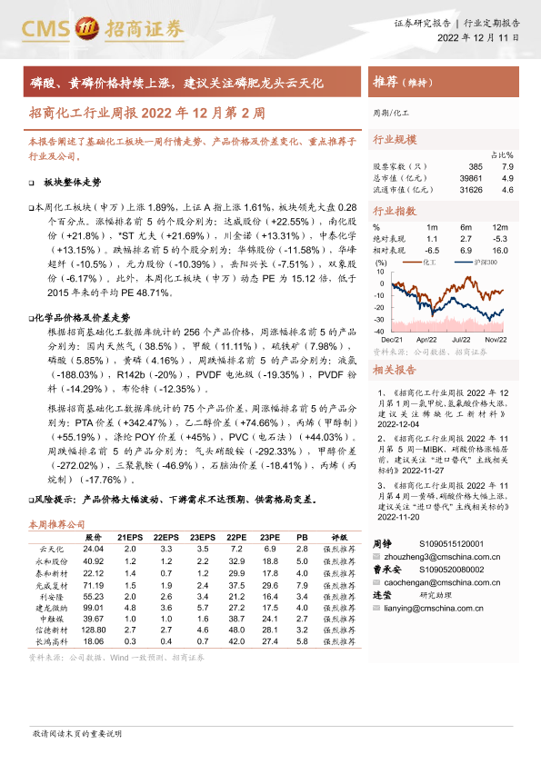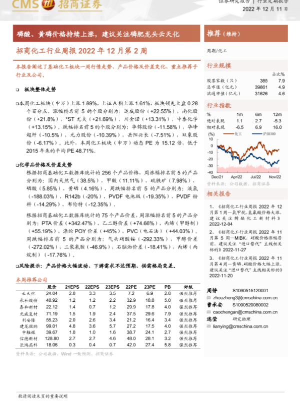 【海通证券】【20221211】招商化工行业周报:磷酸、黄磷价格持续上涨,建议关注磷肥龙头云天化-23页