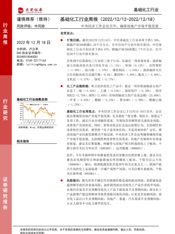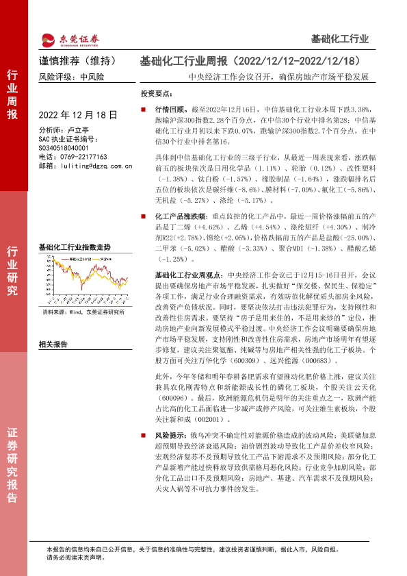 【东莞证券】【20221218】基础化工行业周报:中央经济工作会议召开,确保房地产市场平稳发展-12页