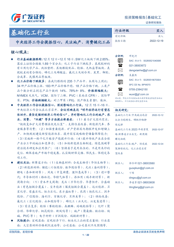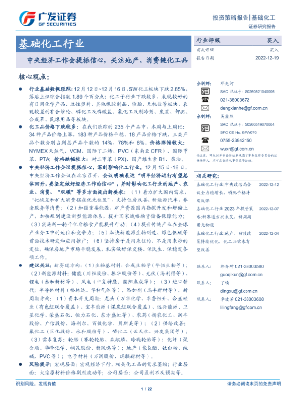 【广发证券】【20221219】基础化工行业投资策略报告:中央经济工作会提振信心,关注地产、消费链化工品-22页