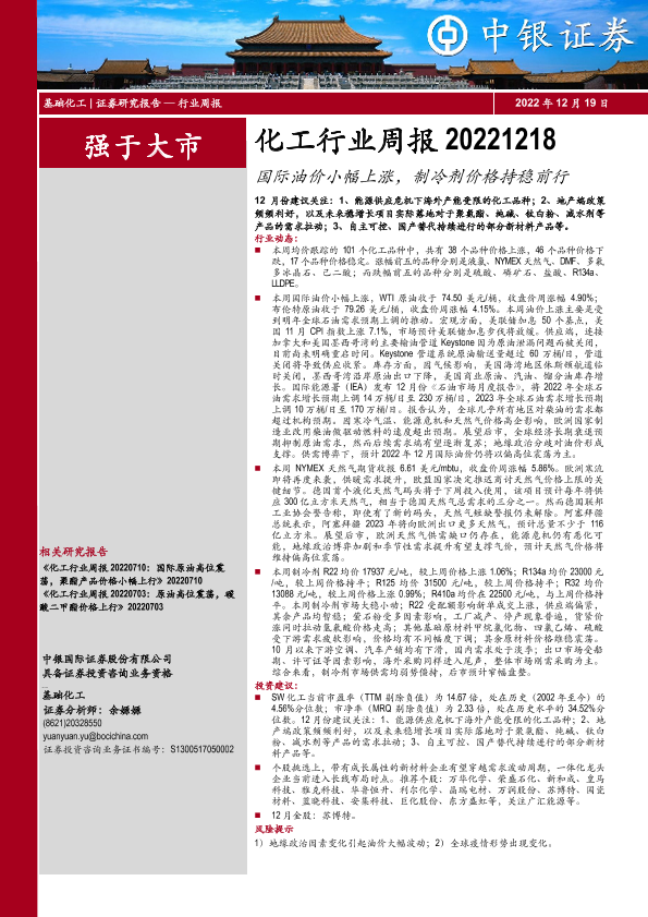 【中银证券】【20221219】20221219-中银证券-化工行业周报:国际油价小幅上涨,制冷剂价格持稳前行-13页