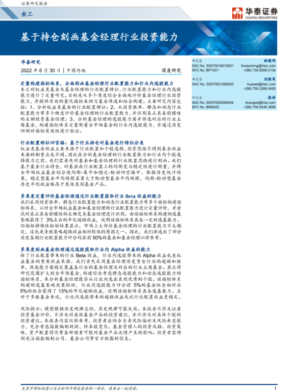【华泰证券】【20220630】金工深度研究:基于持仓刻画基金经理行业投资能力-51页