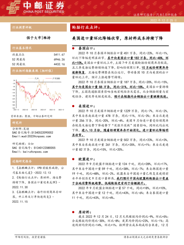 【中邮证券】【20221225】中邮证券-轮胎行业点评:美国进口量环比降幅收窄,原材料成本持续下降-10页