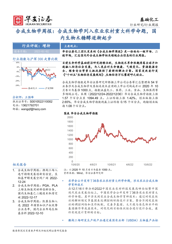 【华安证券】【20230102】合成生物学周报:合成生物学列入农业农村重大科学命题,国内生物木糖醇逐渐起步-25页