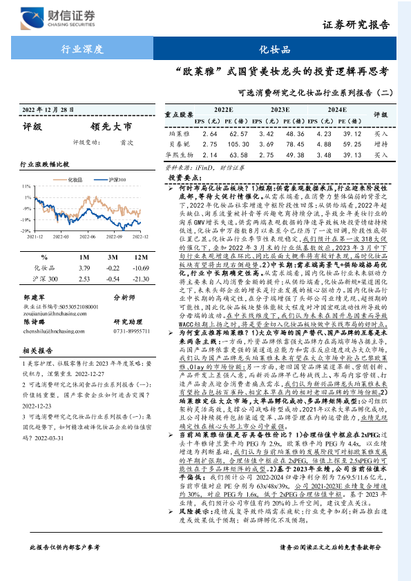 【财信证券】【20221228】可选消费研究之化妆品行业系列报告(二):“欧莱雅”式国货美妆龙头的投资逻辑再思考-13页