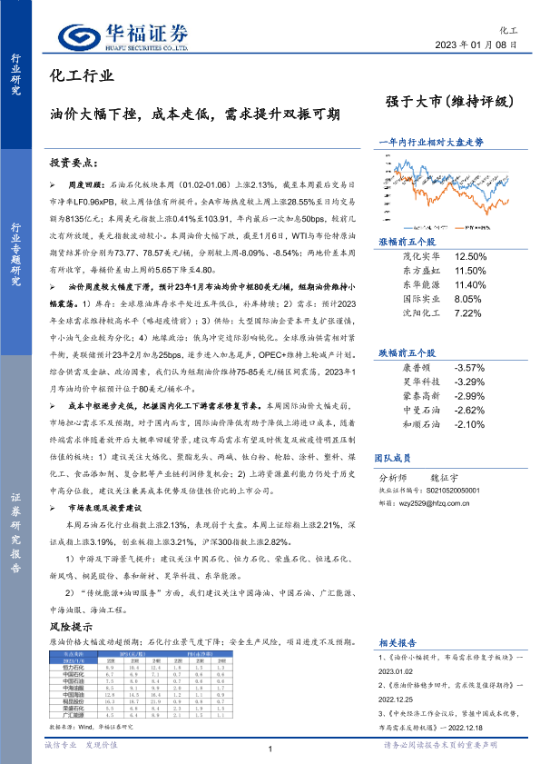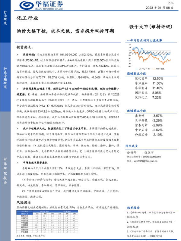 【华福证券】【20230108】20230108-华福证券-化工行业:油价大幅下挫,成本走低,需求提升双振可期-21页