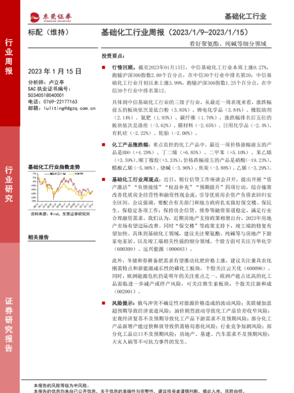 【东莞证券】【20230115】20230115-东莞证券-基础化工行业周报:看好聚氨酯、纯碱等细分领域-12页