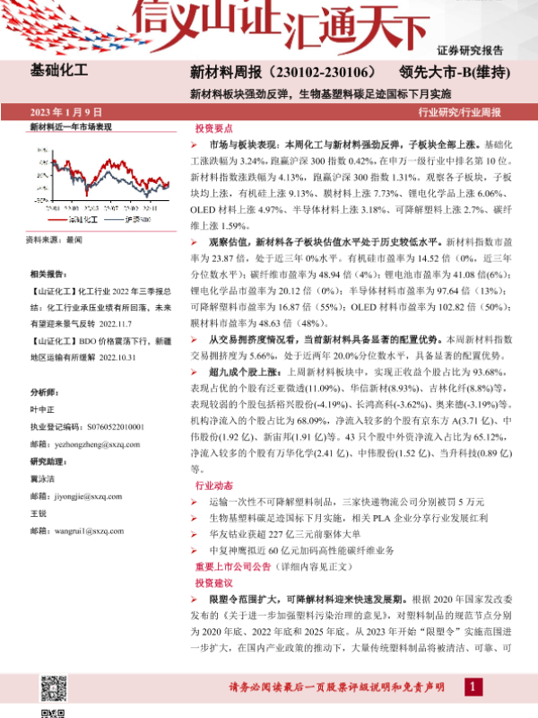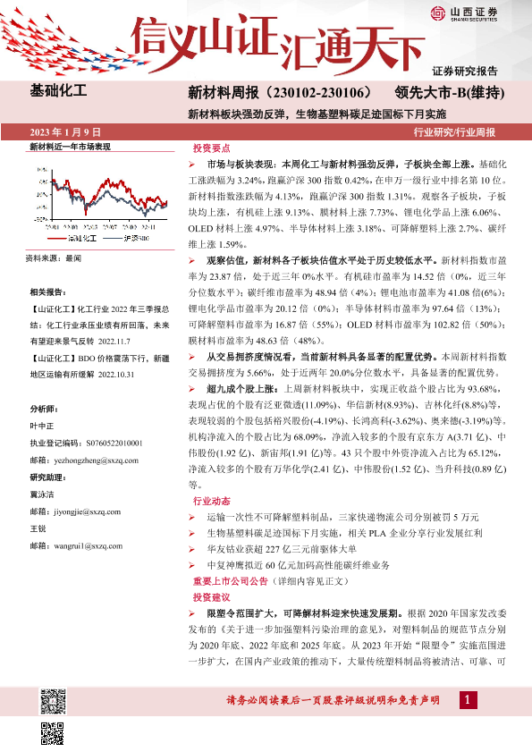 【山西证券】【20230109】20230109-山西证券-新材料周报:新材料板块强劲反弹,生物基塑料碳足迹国标下月实施-24页