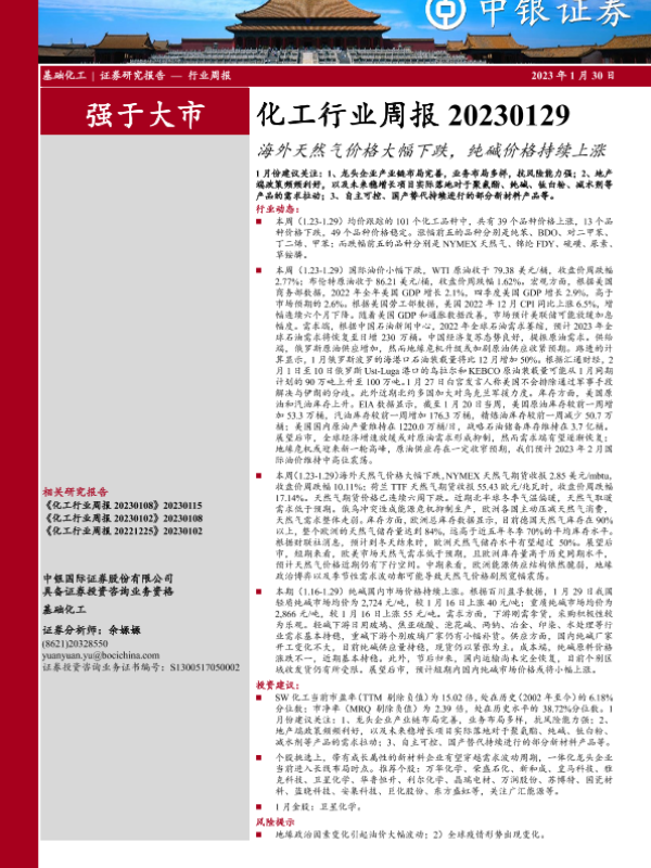 【中银证券】【20230130】20230130-中银证券-化工行业周报:海外天然气价格大幅下跌,纯碱价格持续上涨-12页