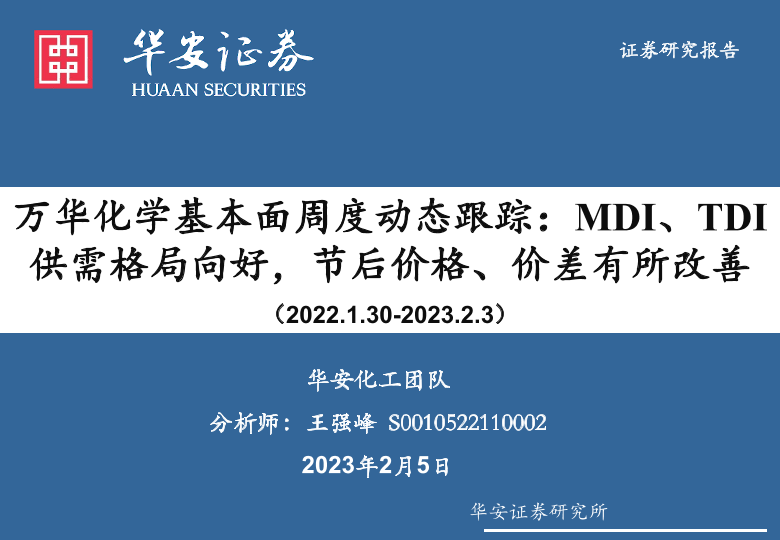 【华安证券】【20230205】万华化学基本面周度动态跟踪:MDI、TDI供需格局向好,节后价格、价差有所改善-30页