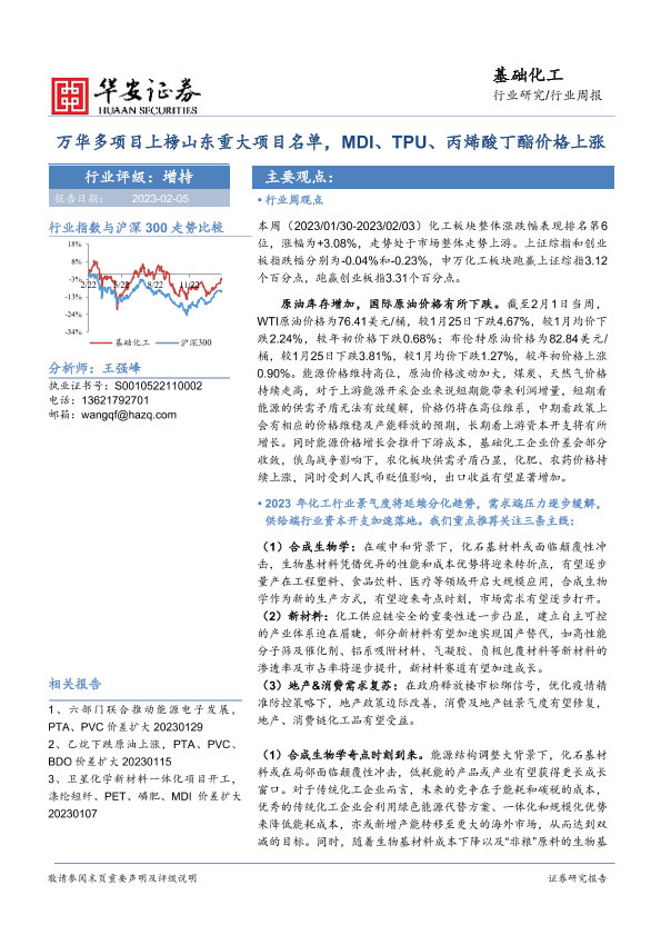 【华安证券】【20230205】基础化工行业周报:万华多项目上榜山东重大项目名单,MDI、TPU、丙烯酸丁酯价格上涨-42页