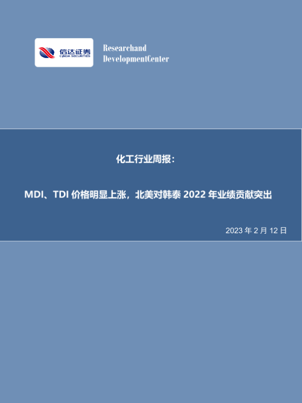 【信达证券】【20230212】20230211-信达证券-化工行业周报:MDI、TDI价格明显上涨,北美对韩泰2022年业绩贡献突出-27页