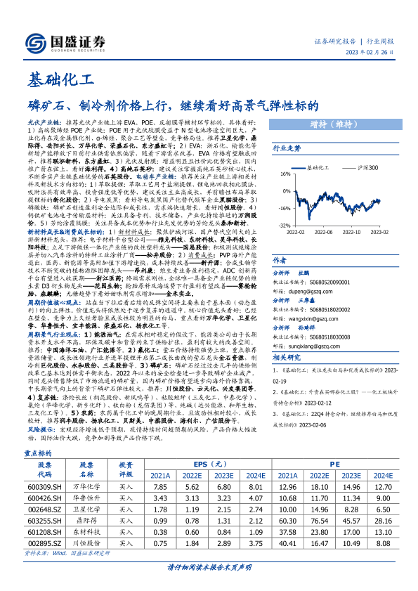 【国盛证券】【20230226】基础化工行业周报:磷矿石、制冷剂价格上行,继续看好高景气弹性标的-16页