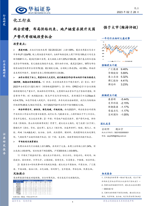 两会前瞻 化工行业 市场表现 投资机会 石油石化