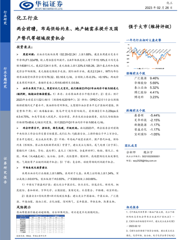 【华福证券】【20230226】20230226-华福证券-化工行业:两会前瞻,布局供给约束、地产链需求提升及国产替代等领域投资机会-21页