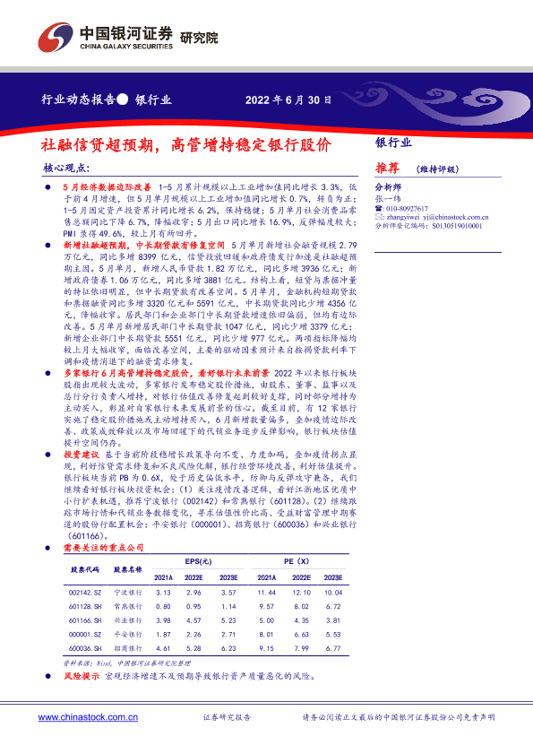 【银河证券】【20220630】银行业:社融信贷超预期,高管增持稳定银行股价-21页