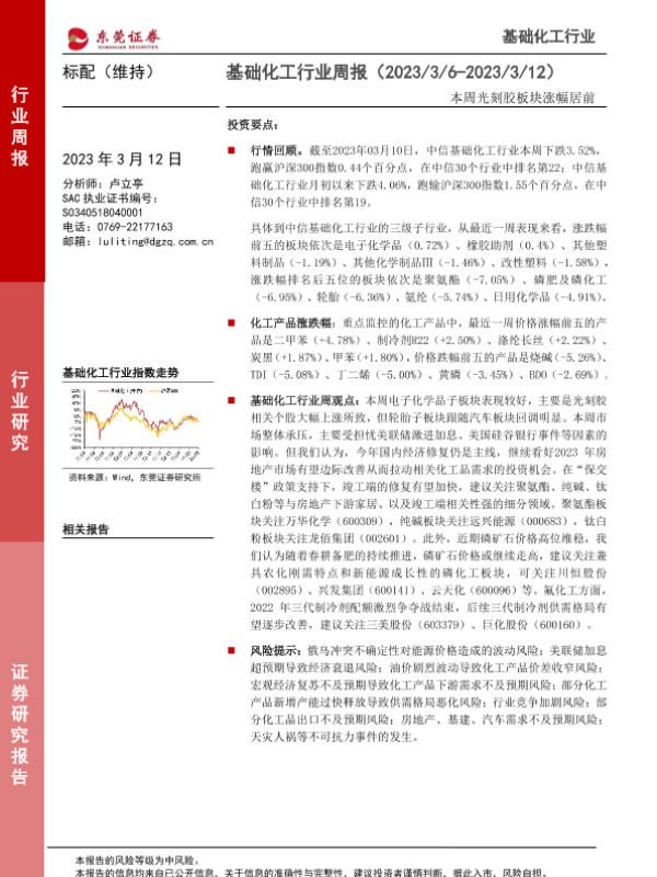 【东莞证券】【20230312】20230312-东莞证券-基础化工行业周报:本周光刻胶板块涨幅居前-13页