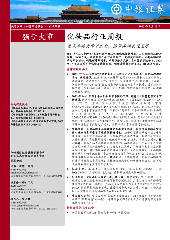 【中银证券】【20230313】20230313-中银证券-化妆品行业周报:重点品牌女神节发力,国货品牌表现亮眼-15页