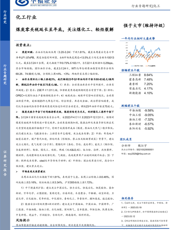 【华福证券】【20230326】化工行业:煤炭零关税延长至年底,关注煤化工、轻烃裂解-24页