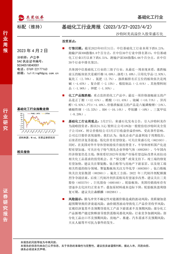 【东莞证券】【20230402】20230402-东莞证券-基础化工行业周报:沙特阿美高溢价入股荣盛石化-13页