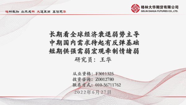 【格林大华期货】【20220627】长期看全球经济衰退弱势主导,中期国内需求待起有反弹基础,短期供强需弱宏观牵制情绪弱-23页