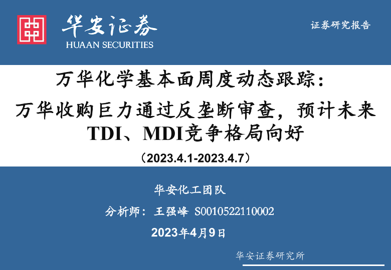 【华安证券】【20230409】万华化学基本面周度动态跟踪:万华收购巨力通过反垄断审查,预计未来TDI、MDI竞争格局向好-33页
