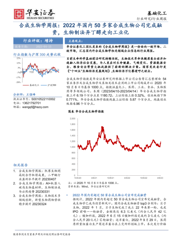 【华安证券】【20230415】20230415-华安证券-合成生物学周报:2022年国内50多家合成生物公司完成融资,生物制法异丁醇走向工业化-17页