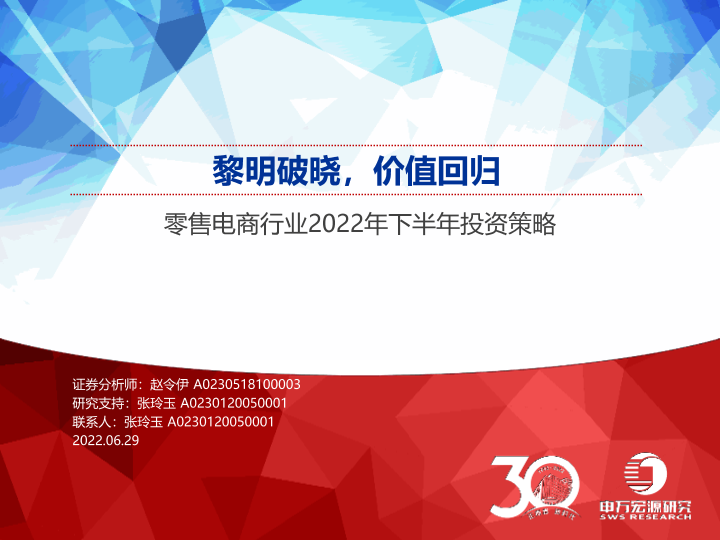 【申万宏源】【20220629】零售电商行业2022年下半年投资策略:黎明破晓,价值回归-37页