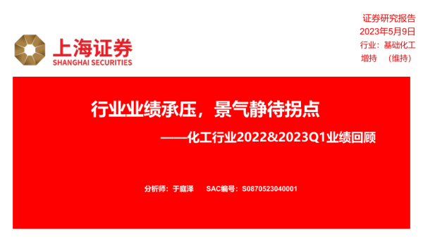 【上海证券】【20230509】化工行业2022&2023Q1业绩回顾:行业业绩承压,景气静待拐点-12页