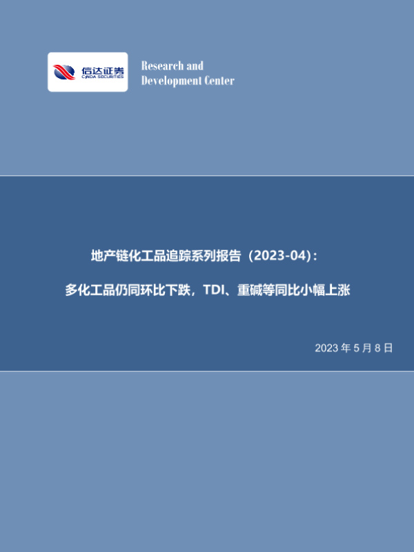 【信达证券】【20230508】地产链化工品追踪系列报告(2023-04):多化工品仍同环比下跌,TDI、重碱等同比小幅上涨-27页