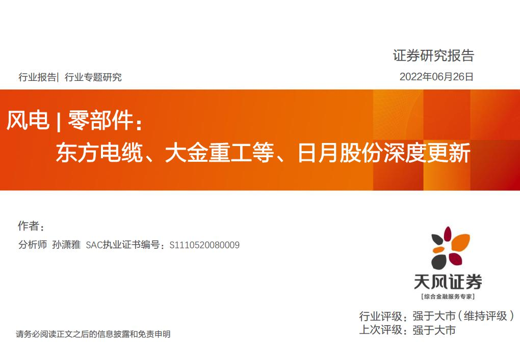 【天风证券】【20220626】风电零部件行业:东方电缆、大金重工等、日月股份深度更新-20页