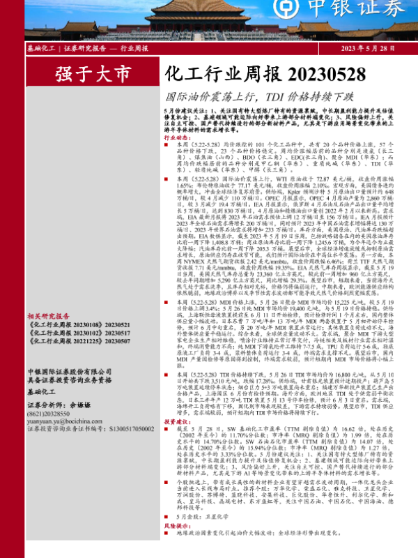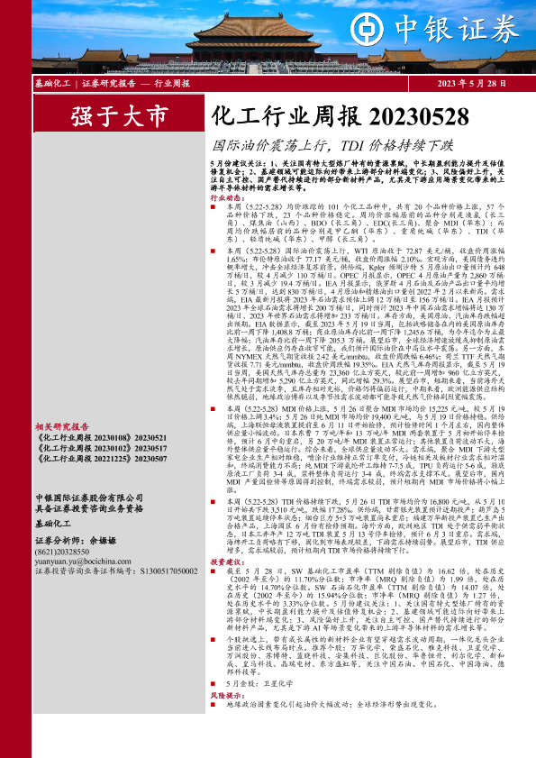 【中银证券】【20230528】20230528-中银证券-化工行业周报:国际油价震荡上行,TDI价格持续下跌-16页