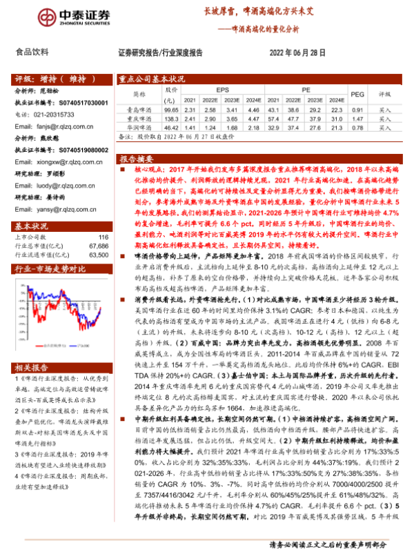 【中泰证券】【20220628】食品饮料行业啤酒高端化的量化分析:长坡厚雪,啤酒高端化方兴未艾-25页