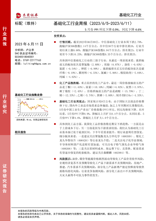 【东莞证券】【20230611】20230611-东莞证券-基础化工行业周报:5月份PPI环比下降0.9%、同比下降4.6%-12页