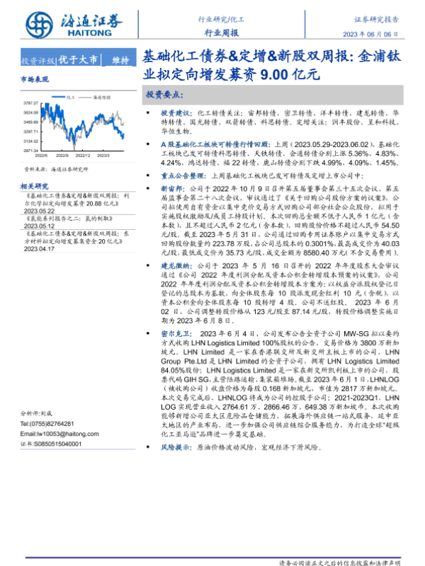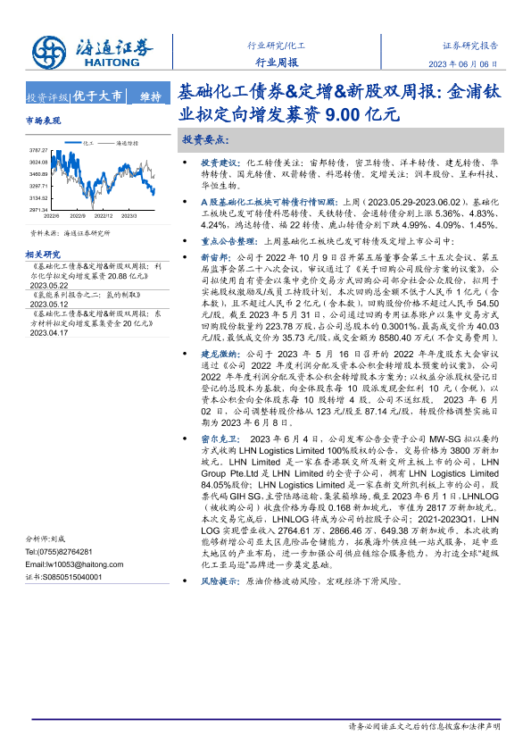 【海通证券】【20230606】基础化工债券&定增&新股双周报:金浦钛业拟定向增发募资9.00亿元-17页