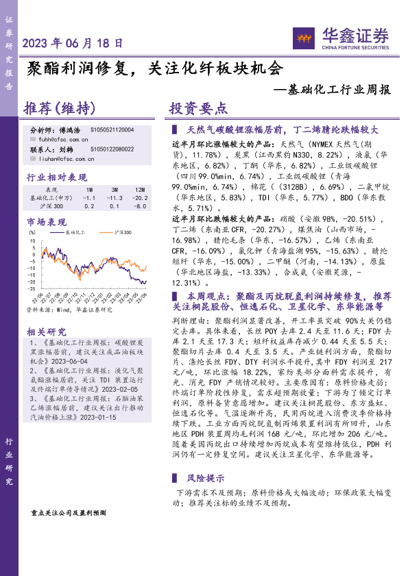 【华鑫证券】【20230618】20230618-华鑫证券-基础化工行业周报:聚酯利润修复,关注化纤板块机会-37页