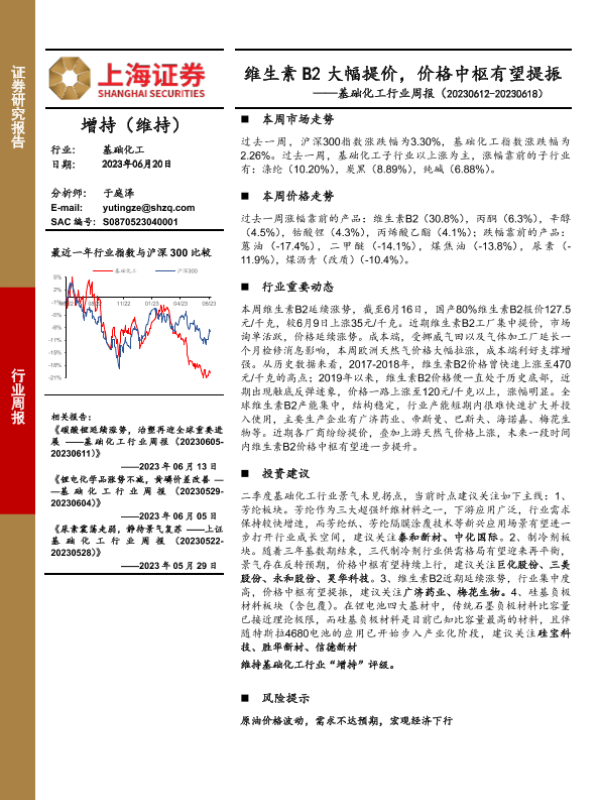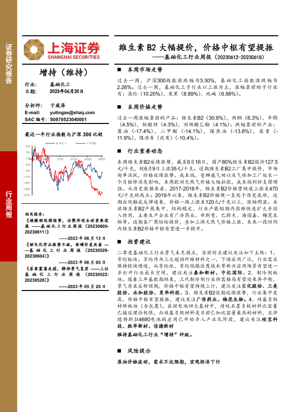 【上海证券】【20230620】20230620-上海证券-基础化工行业周报:维生素B2大幅提价,价格中枢有望提振-15页
