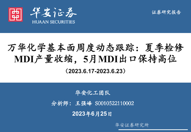 【华安证券】【20230625】万华化学基本面周度动态跟踪:夏季检修MDI产量收缩,5月MDI出口保持高位-34页