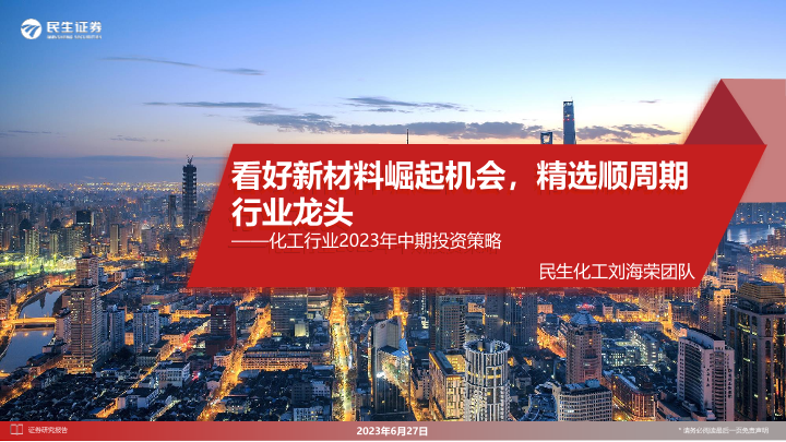 【民生证券】【20230627】化工行业2023年中期投资策略:看好新材料崛起机会,精选顺周期行业龙头-99页