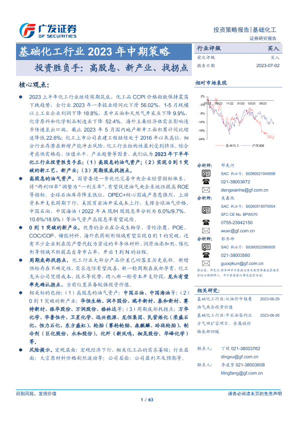 【广发证券】【20230702】基础化工行业2023年中期策略:投资胜负手:高股息、新产业、找拐点-63页