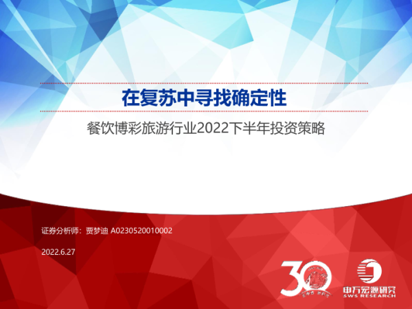 【申万宏源】【20220627】餐饮博彩旅游行业2022下半年投资策略:在复苏中寻找确定性-30页