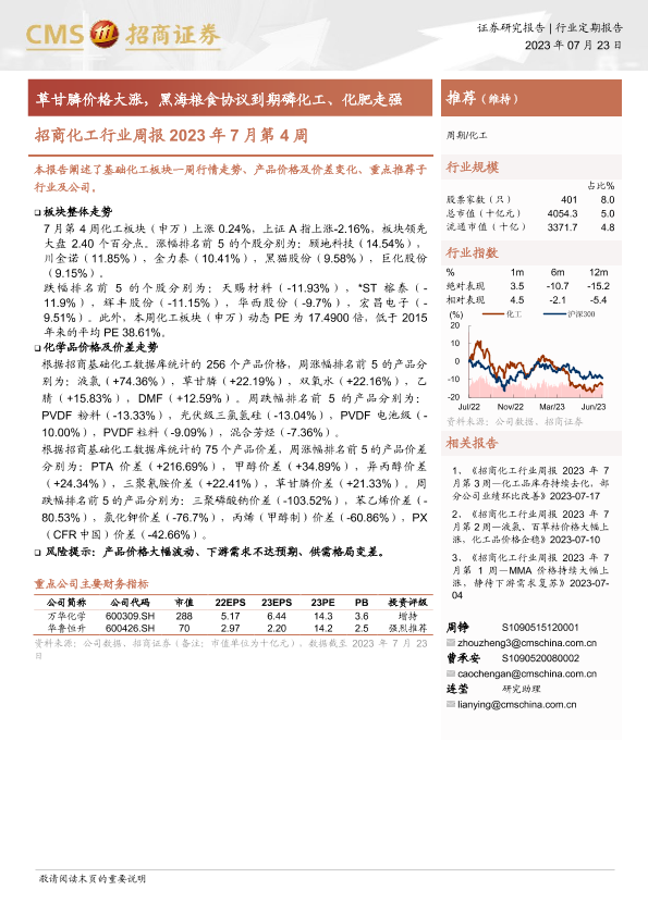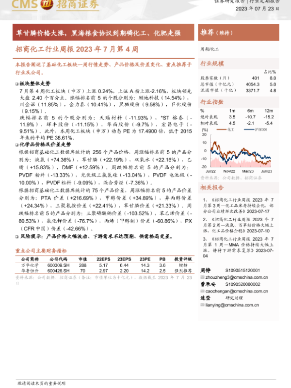 【海通证券】【20230723】招商化工行业周报2023年7月第4周:草甘膦价格大涨,黑海粮食协议到期磷化工、化肥走强-19页