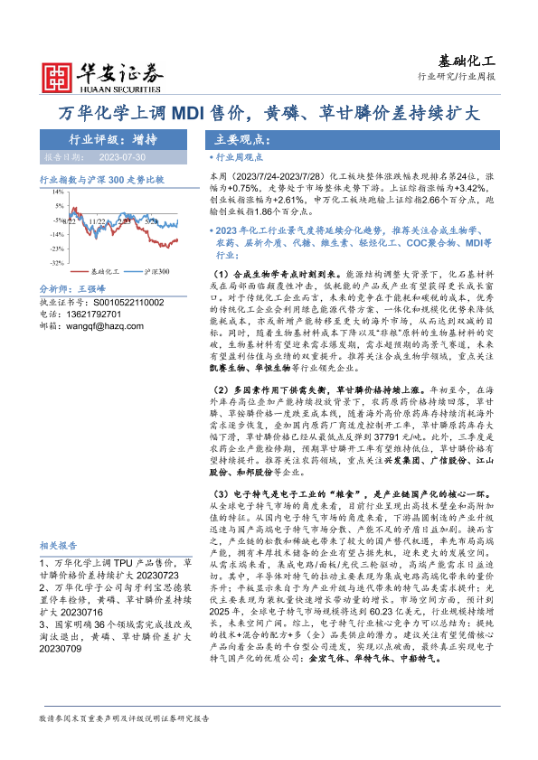 【华安证券】【20230730】20230730-华安证券-基础化工行业周报:万华化学上调MDI售价,黄磷、草甘膦价差持续扩大-44页