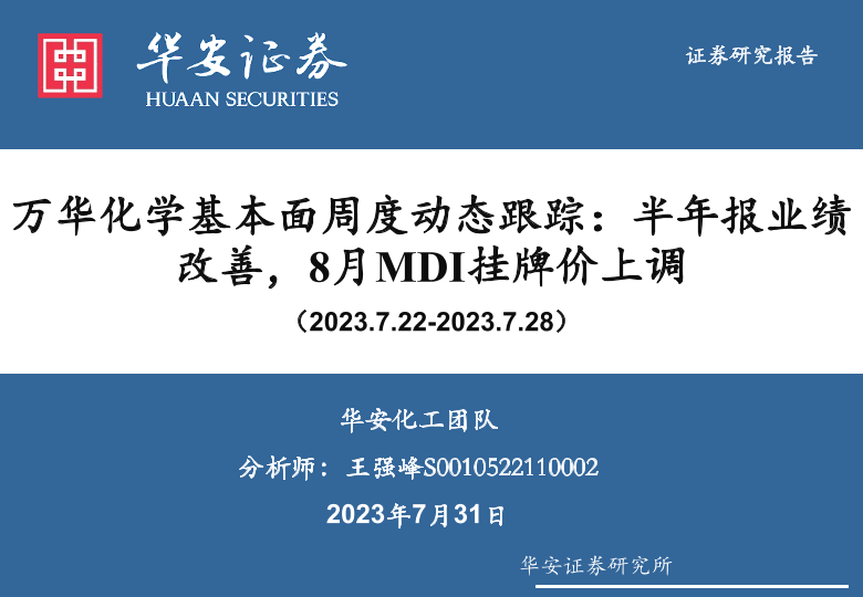 【华安证券】【20230731】20230731-华安证券-万华化学基本面周度动态跟踪:半年报业绩改善,8月MDI挂牌价上调-32页