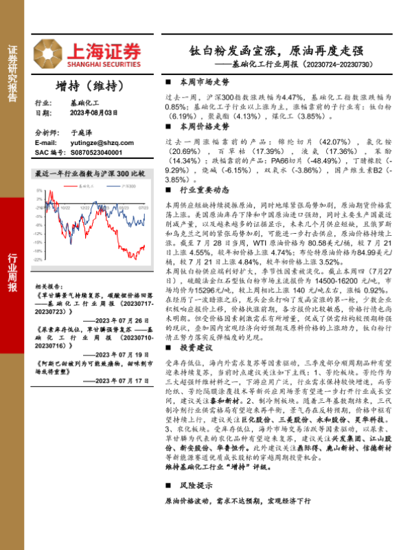 【上海证券】【20230803】基础化工行业周报:钛白粉发函宣涨,原油再度走强-17页
