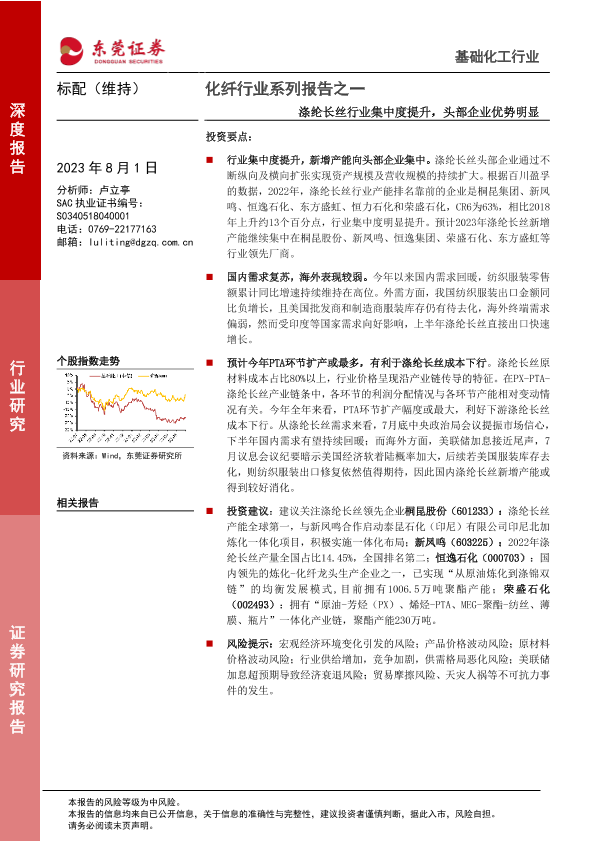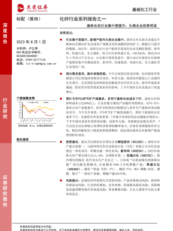 【东莞证券】【20230801】20230801-东莞证券-化纤行业系列报告之一:涤纶长丝行业集中度提升,头部企业优势明显-23页