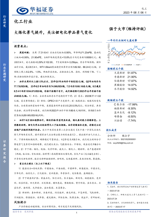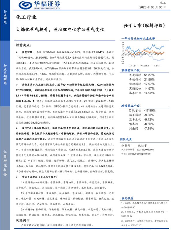 【华福证券】【20230806】20230806-华福证券-化工行业:大炼化景气提升,关注锂电化学品景气变化-28页
