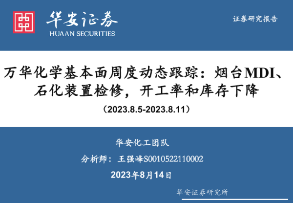 【华安证券】【20230814】20230813-华安证券-万华化学基本面周度动态跟踪:烟台MDI、石化装置检修,开工率和库存下降-32页
