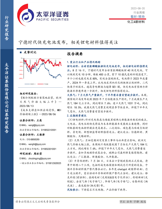 【太平洋证券】【20230820】20230820-太平洋-化工&新材料行业周报:宁德时代快充电池发布,相关锂电材料值得关注-35页