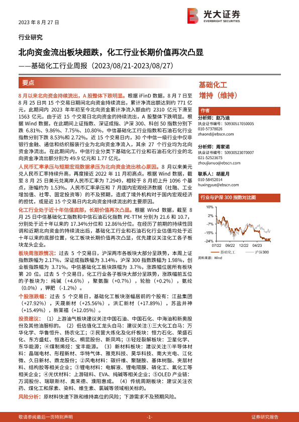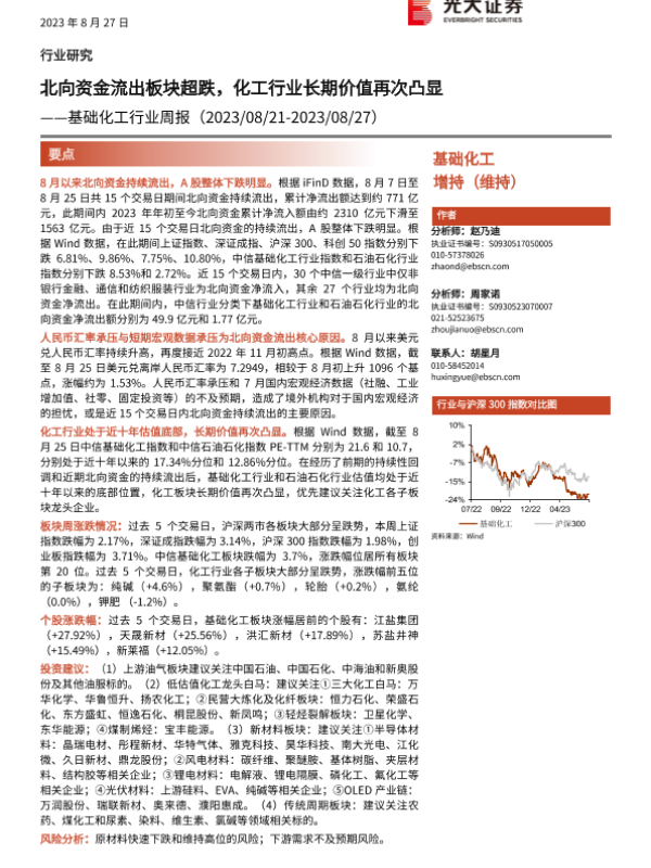 【光大证券】【20230827】基础化工行业周报:北向资金流出板块超跌,化工行业长期价值再次凸显-25页